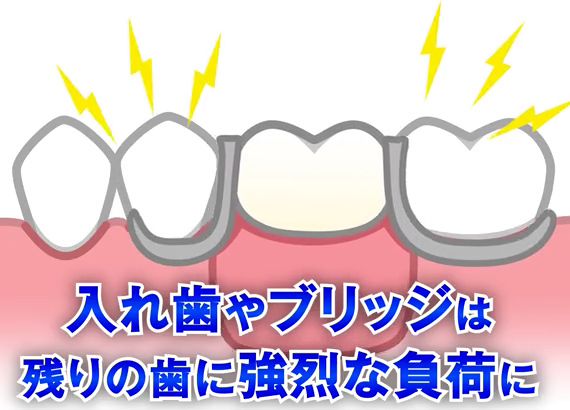 歯ぐきが弱った状態で入れ歯やブリッジを付けることが最後の決定打となってしまい、